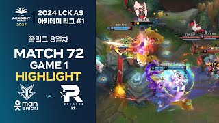 #LCK AS 상반기 아카데미 리그 BRO vs KT | 06.09. MATCH 72 Game 1 H/L | 2024 LCK AS