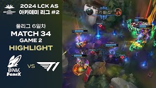 LCK AS 하반기 아카데미 리그 FOX vs T1 | 11.10. MATCH 34 Game 2 H/L | 2024 LCK AS
